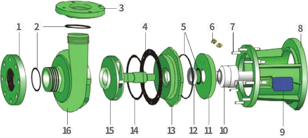 16 Centrifugálszivattyú szivattyútest FRPP.PVDF
