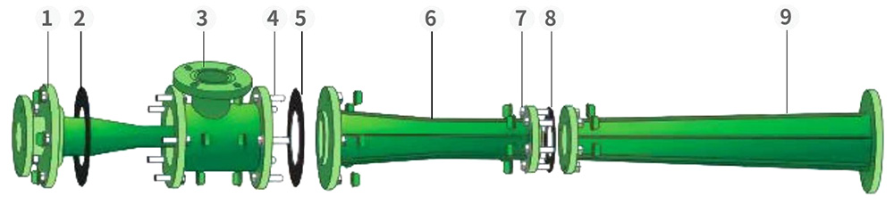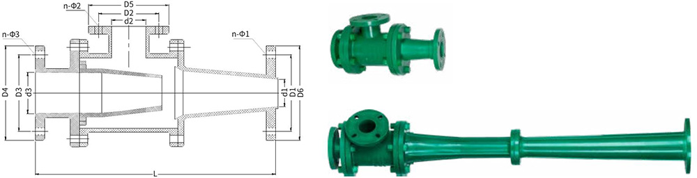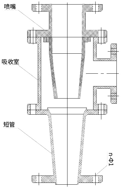 Levegős víz sorozatú csatlakozó sugárszivattyú szerelvény részletrajza