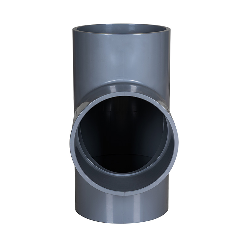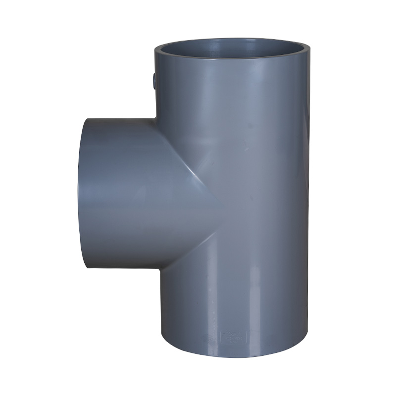 Gyári ár Világosszürke PVC-C Tee egyforma alakú műanyag csőszerelvények DN15-DN600 vízcsőszerelvények Egyenes pólószerelvények vízelvezetéséhez és csatornázáshoz