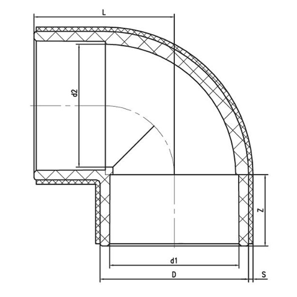 FRP/PVC-C, FRP/PVC-U üvegszál erősítésű műanyag bevonatú 90°-os könyök