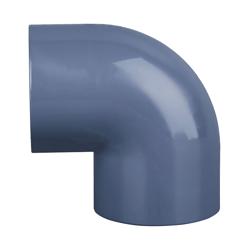 kiváló minőségű világosszürke PVC-C 90° könyök alakú DN15-DN600 1,0-1,6 MPa üzemi nyomású műanyag csőszerelvények vegyipar és vízipar számára