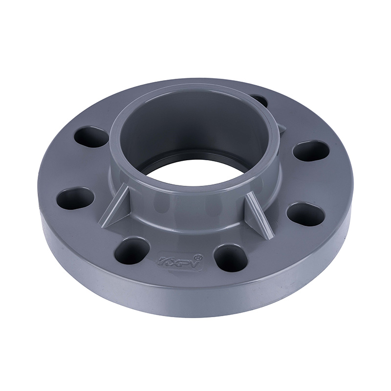Új, általánosan használt világosszürke PVC-C aljzatkarima DN15-DN200 vegyi és egészségügyi műanyag csőszerelvények