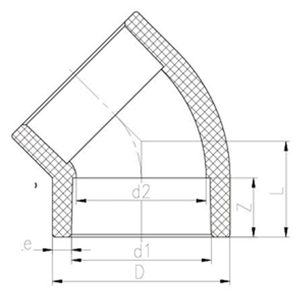 PPH Hot Melt Socket 45° könyök DN15-100 GB Standard