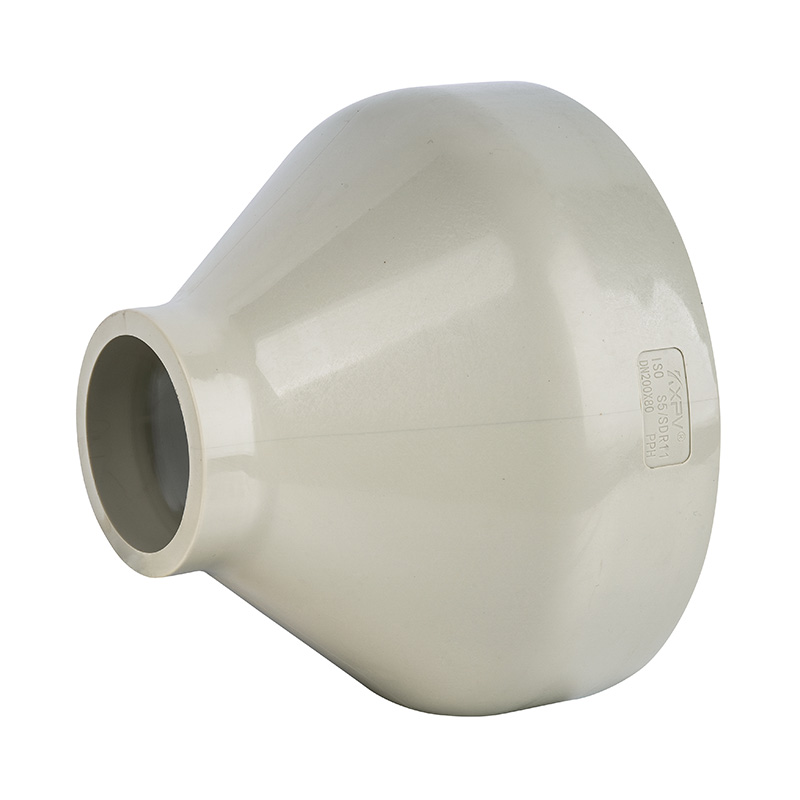 Földessárga PPH tompahegesztésű reduktorok DN50*40-300*250 egyedi 4 hüvelykes Ipari műanyag csősapka szerelvények vegyi és vízellátáshoz