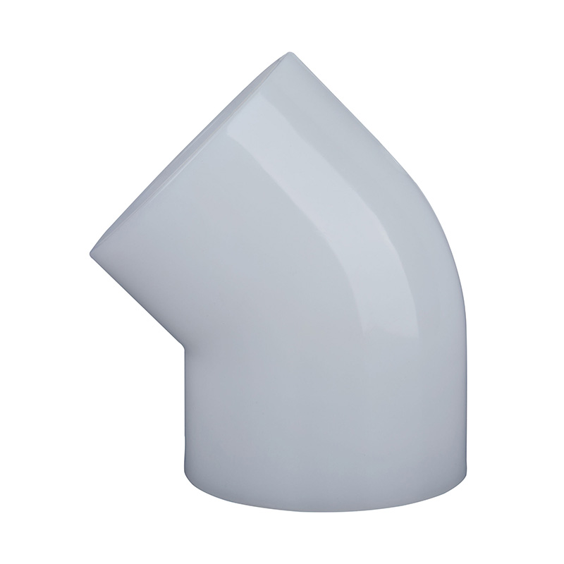 Szupertartós fehér PVDF 45°-os könyök egyenlő alakú Professzionális szabványos méretek DN15-DN100 műanyag csőszerelvények PVDF Formula 45°-os könyök