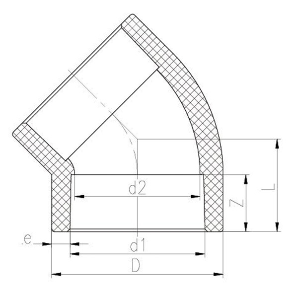 PVDF 45° könyök DN15-100 GB Standard