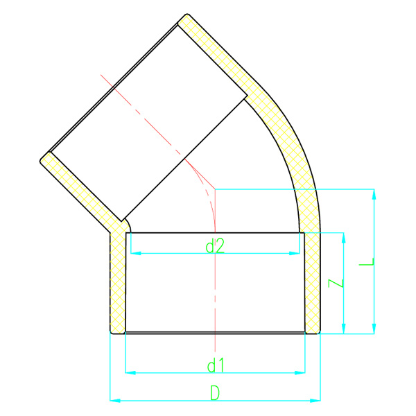 PVC-U 45° könyök DN15-600 GB Szabvány