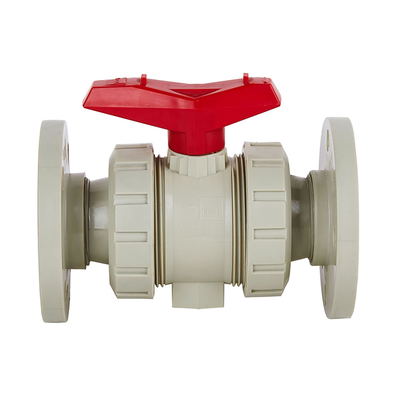 Versenyképes áron, rendkívül tartós új bézs PPH karimás dupla csatlakozóaljzatú golyóscsap vegyipari és víziparhoz ANSI szabvány
