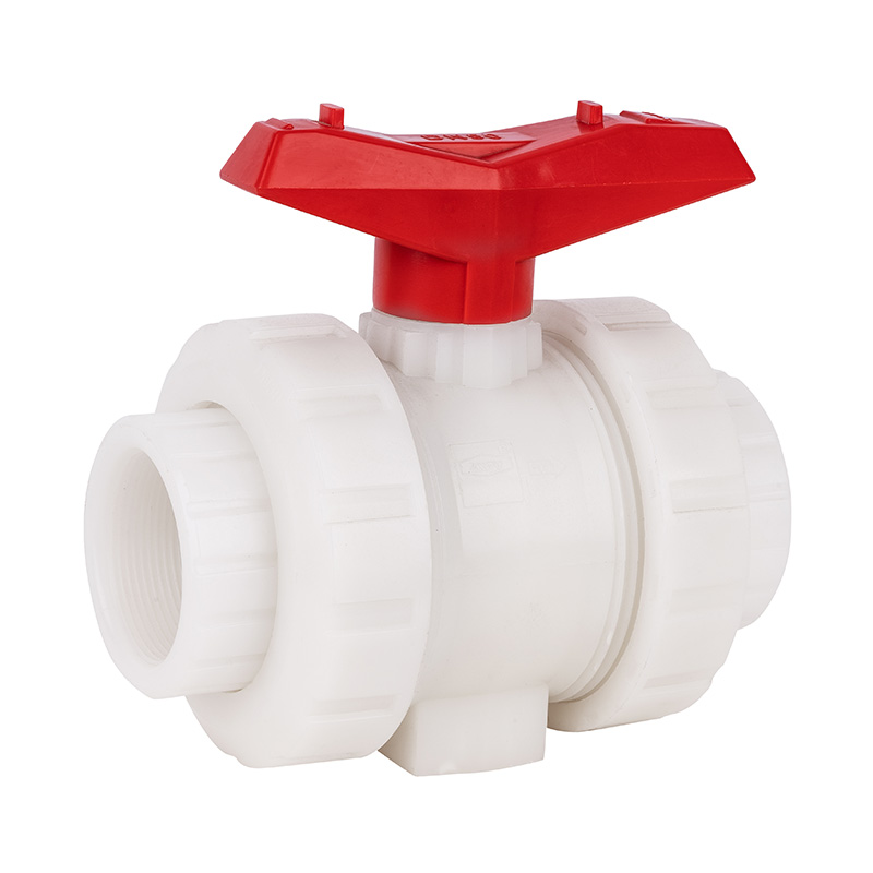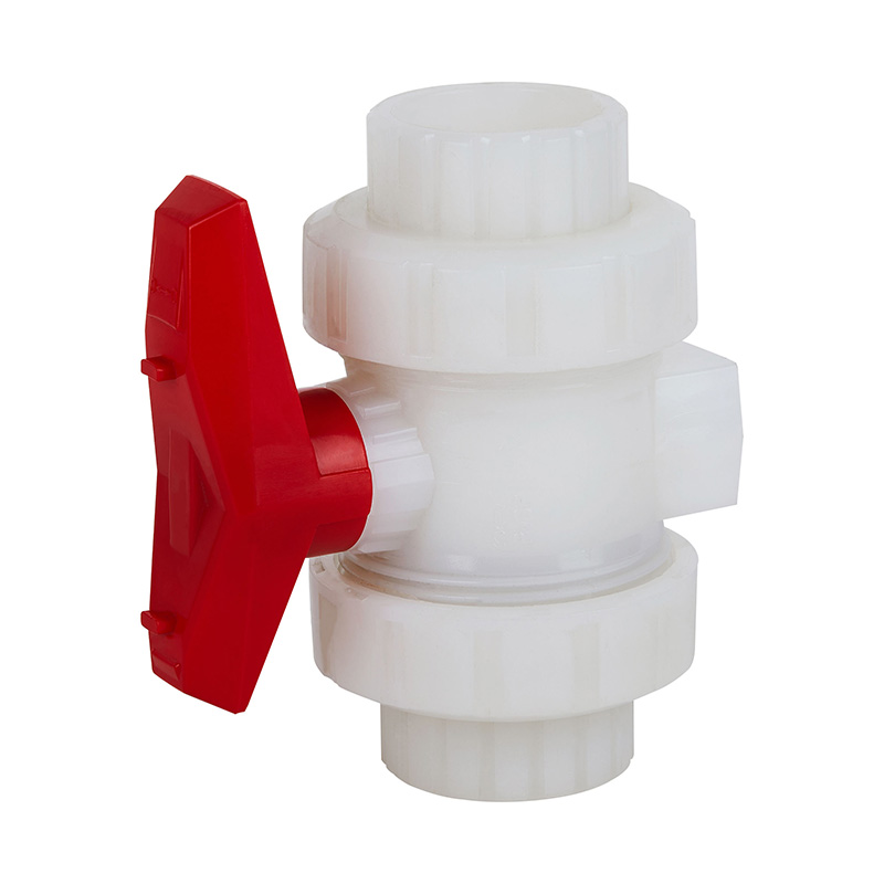 Fehér, 20 mm-110 mm magas hőmérsékletű, rendkívül tartós szabványos PVDF duplacsatlakozós golyóscsap 1,0-1,6 MPa ISO STD szabványos ipari műanyag szelep