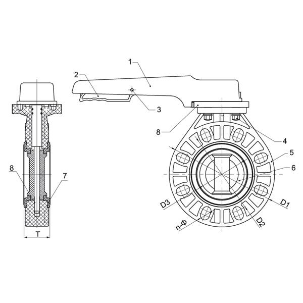 PVDF D71X-10F fogantyús pillangószelep DN40-200 1-1/2"-8" ANSI szabvány