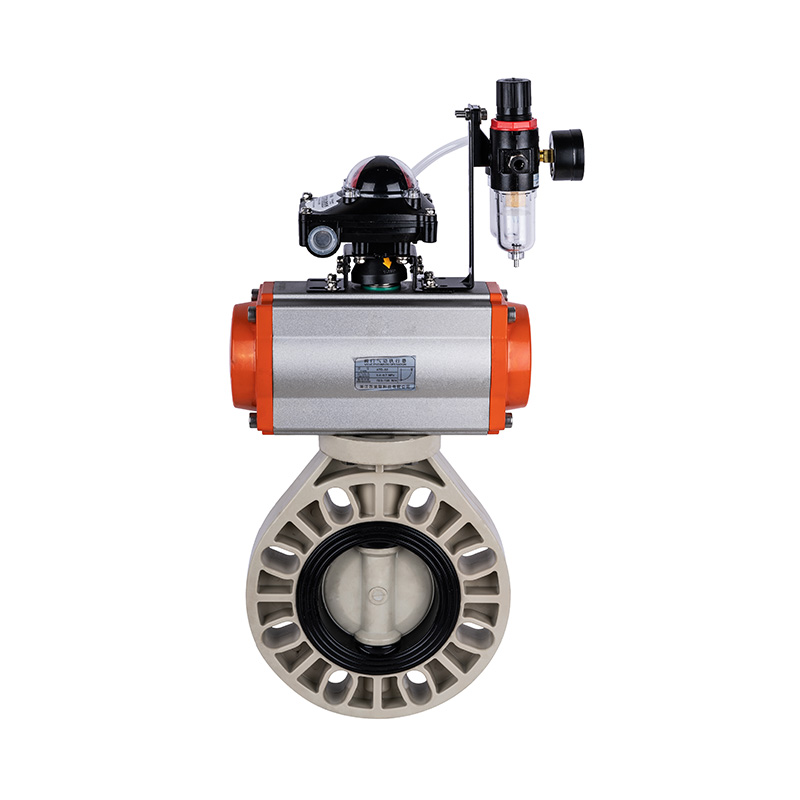 PPH pneumatikus automata pillangószelep, középső tömítés lágy tömítés, DN40-1000, ipari és háztartási műanyag szelep, JIS szabvány