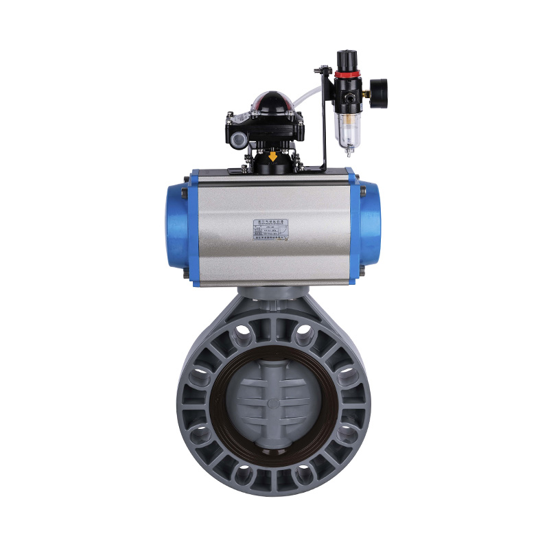 PVC-C pneumatikus működtetésű pillangószelep, középső tömítés lágy tömítés DN32-1000, ipari és lakossági műanyag pillangószelep ANSI szabvány