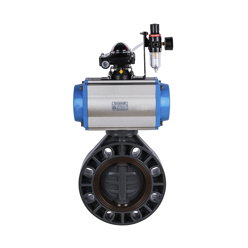 PVC-U pneumatikus működtetésű pillangószelep, középső tömítés lágy tömítés DN32-1000, ipari és lakossági műanyag pillangószelep ANSI szabvány