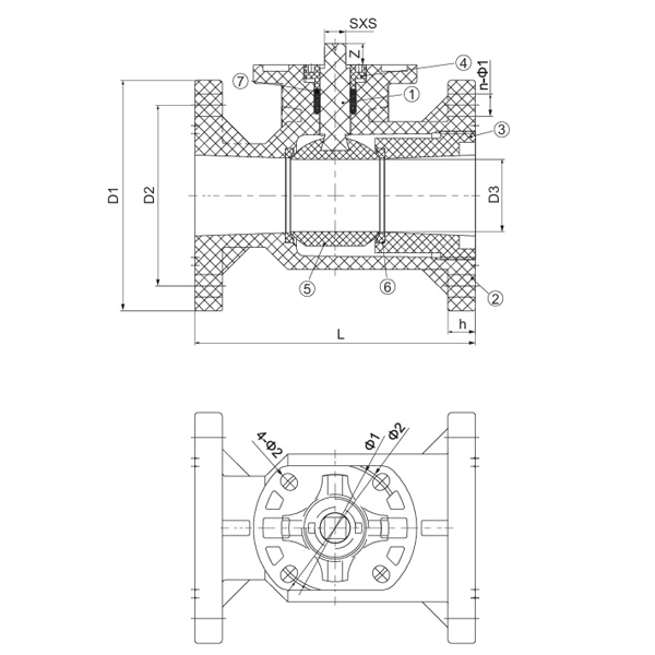 Specifikáció D1 (mm) D2 (mm) D3 (mm) L(mm) h(mm) n-Φ1(mm) Φ1(mm) Φ2(mm) SXS (mm) 4-Φ2 (mm) Z(mm)