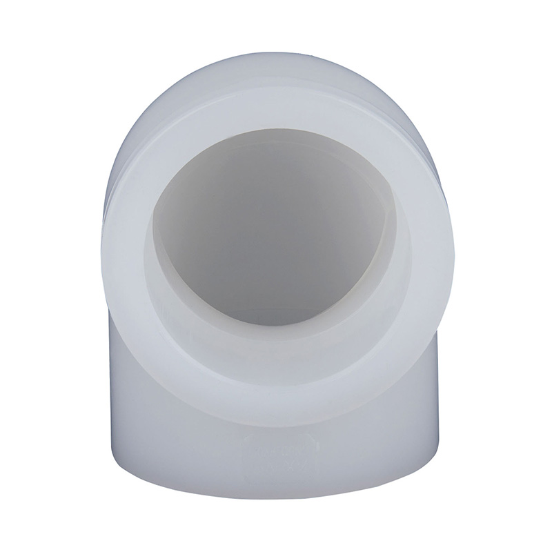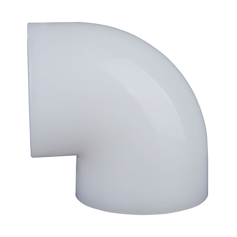 Kiváló minőségű fehér PVDF 90° könyök Egyforma alakú DN15-DN100 1,0-1,6 MPa üzemi nyomású műanyag csőszerelvény vegyipari és víziparhoz