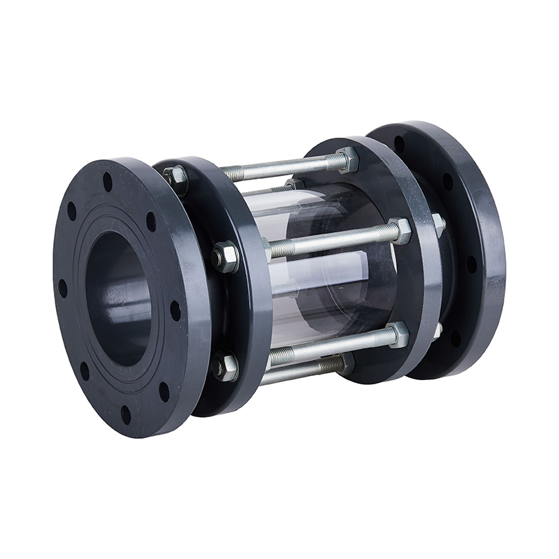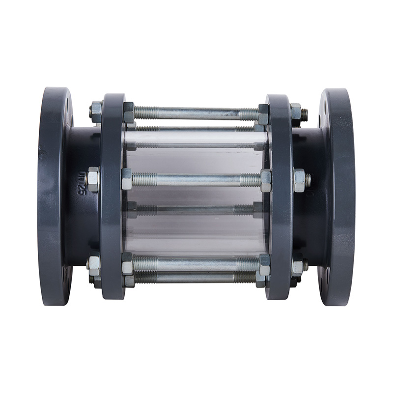 Egyedi sötétszürke cső alakú PVC-U látóüveg stabilizálható kerek boroszilikát áramlásjelző folyékony olaj karimás műanyag kémlelőüveg